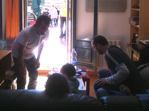 Luismi y el Chengue haciendo estiramientos para suparticipación en el I Concurso de imitadores del Pozí