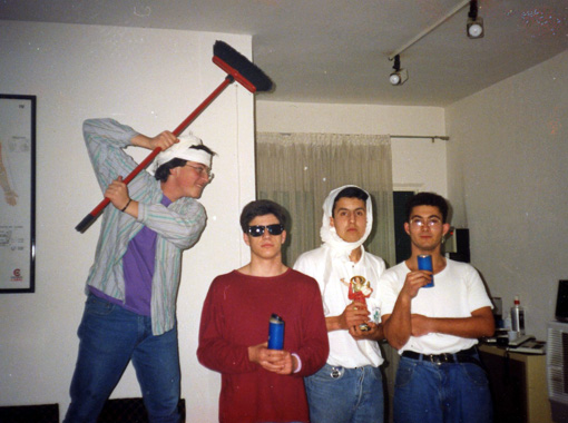 Un tarao tratando de agredir a tres beatos